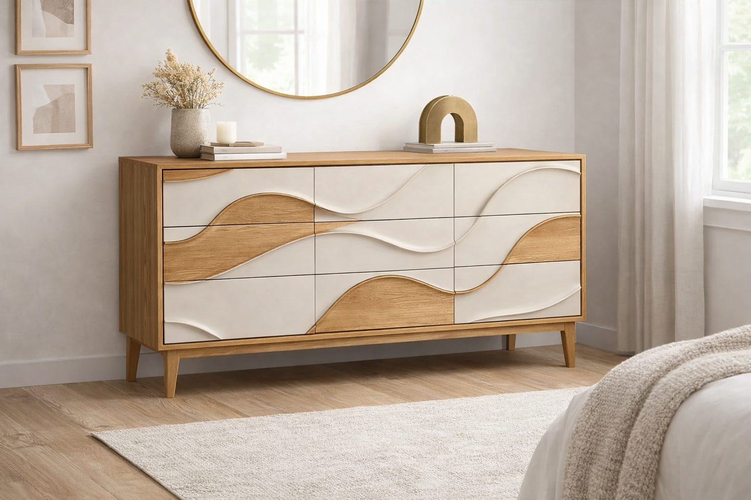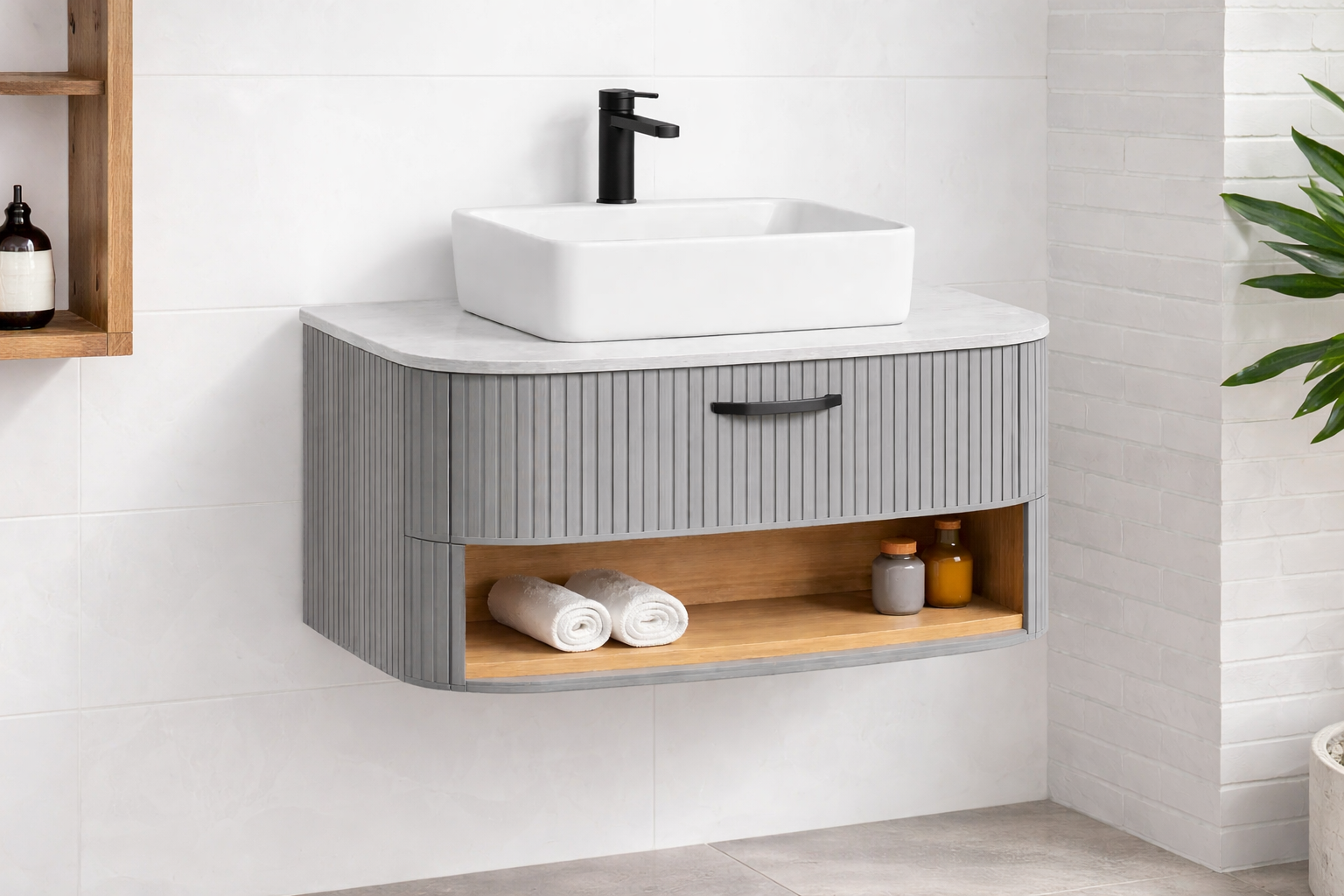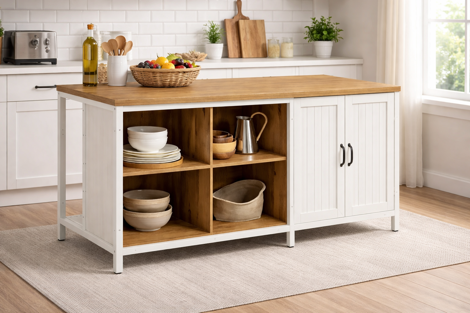 Meuble bar rond bois avec portes et rangement bouteilles